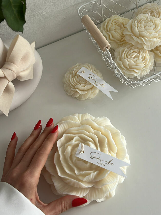 Świeca piwonia xxl 15 cm 470 gramŚwiece sojowe idealne na prezent podziękowania czy inne uroczystości